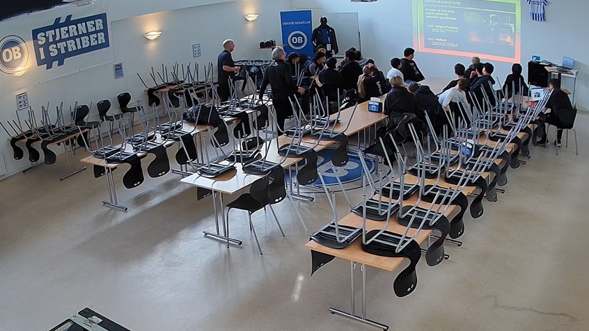 Torsdag morgen/formiddag havde vi besøg af en valgfagsklasse fra Næsby-området, som kom forbi for at høre og opleve mere om både træning og det at være – og blive – fodboldtræner i OB.