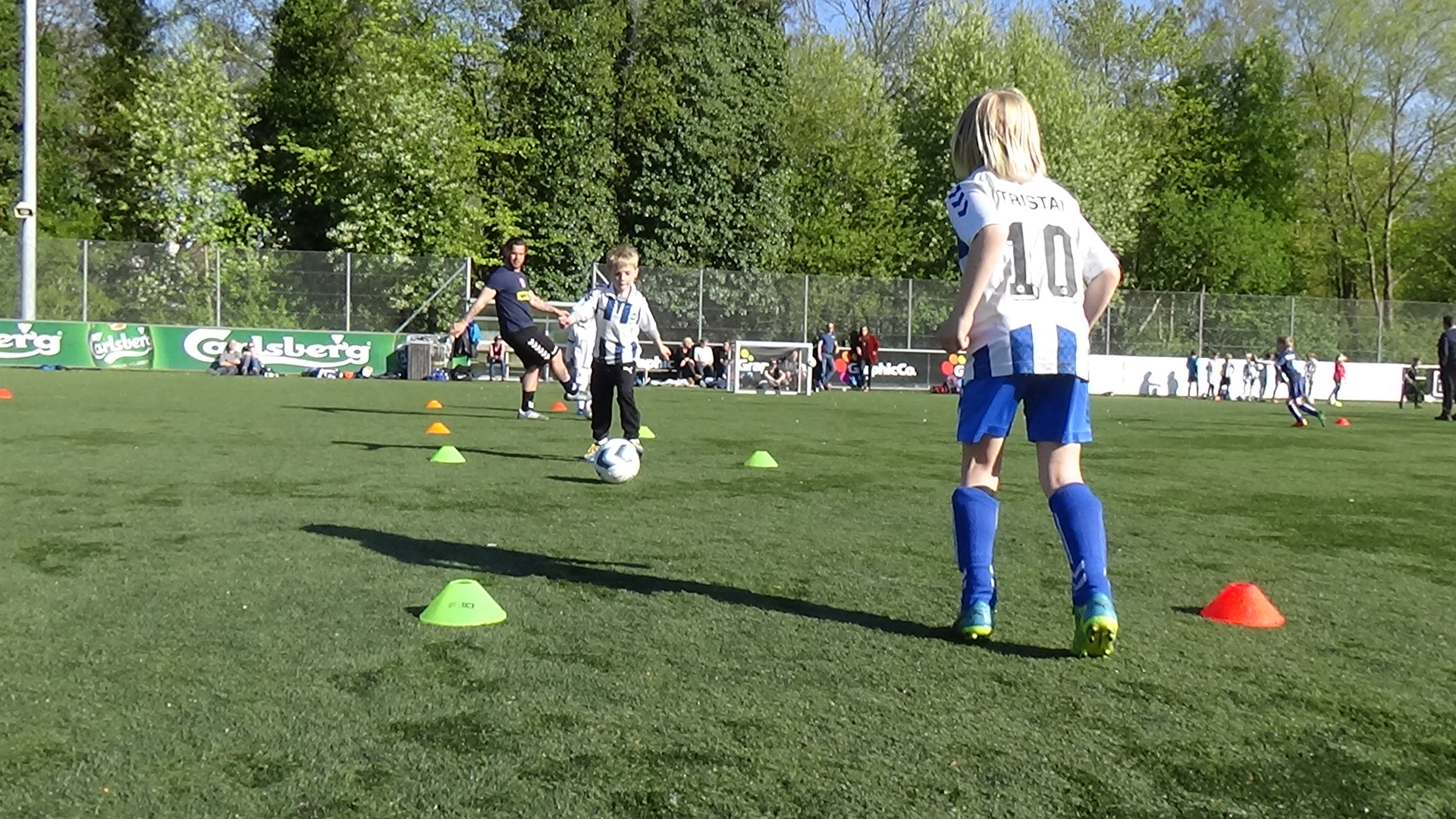 Onsdag var solen og vinden perfekt og så var humøret højt blandt både spillere og trænere - lige fra U6 til U11 var på træningsbanen og der blev sparket, fintet, driblet og udfordret på mange måder
