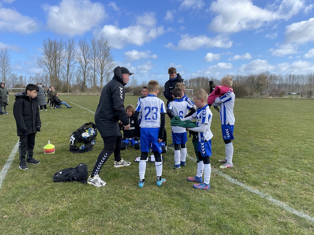 Drengene bliver bedt om at blive ved med at øve sig på det, der trænes på i hverdagen, og indsatsen i anden halvleg er god.