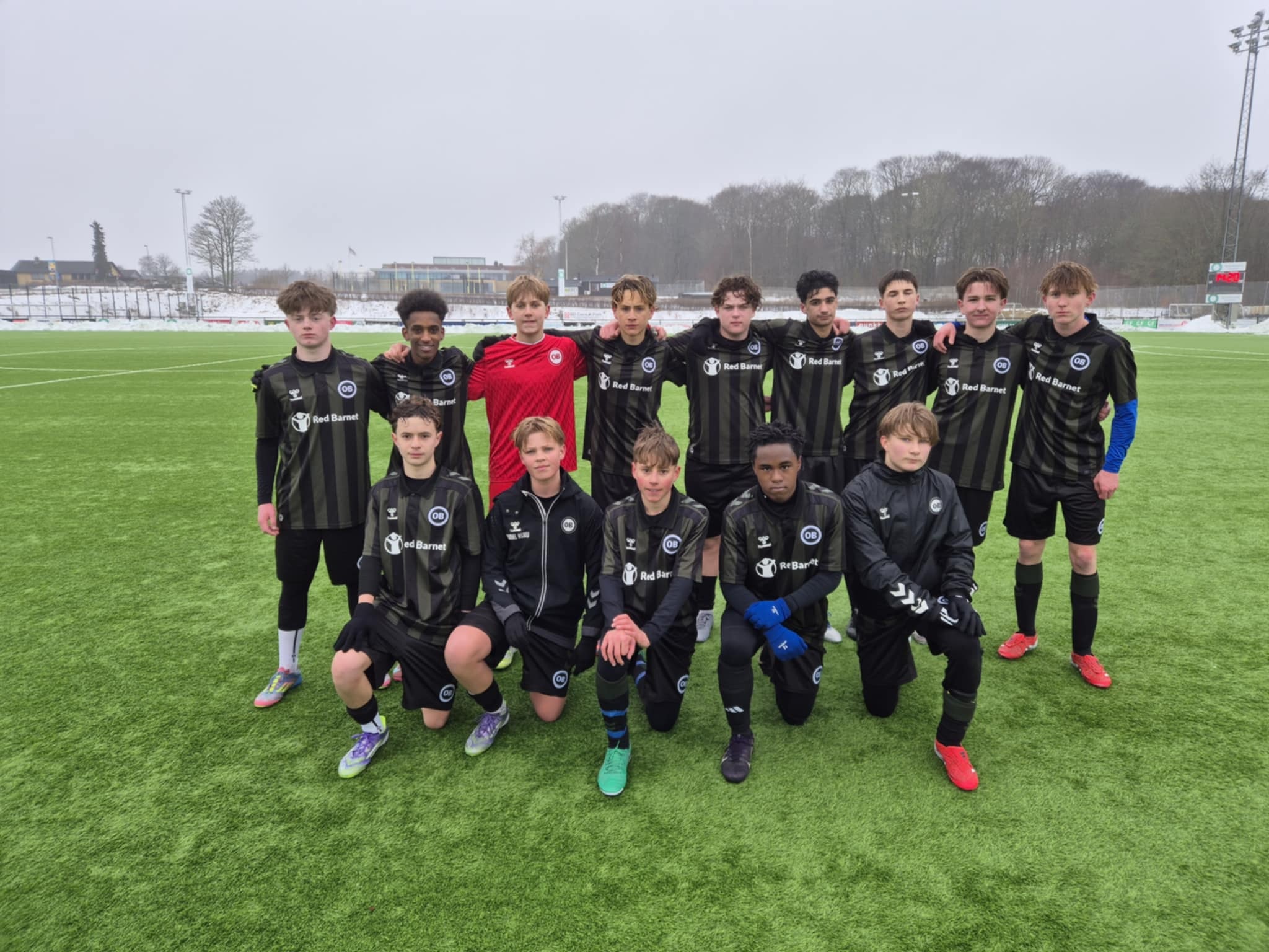 OB kreerer nogle store chancer med flotte skud, som går lige over mål, og en på overliggeren - desværre får vi ikke bragt os foran, så Hobros knivskarpe angribere er gode til at kombinere foran OB-målet, 1-0 til Hobro. 1 min. efter scorer Hobro igen, og drengene er for alvor sat på prøve mentalt.